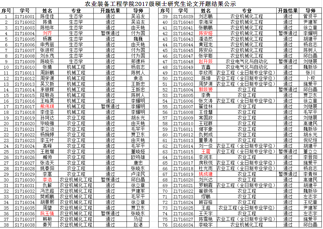 农业装备工程啪啪啦 2017级硕士研究生论文开题结果公示