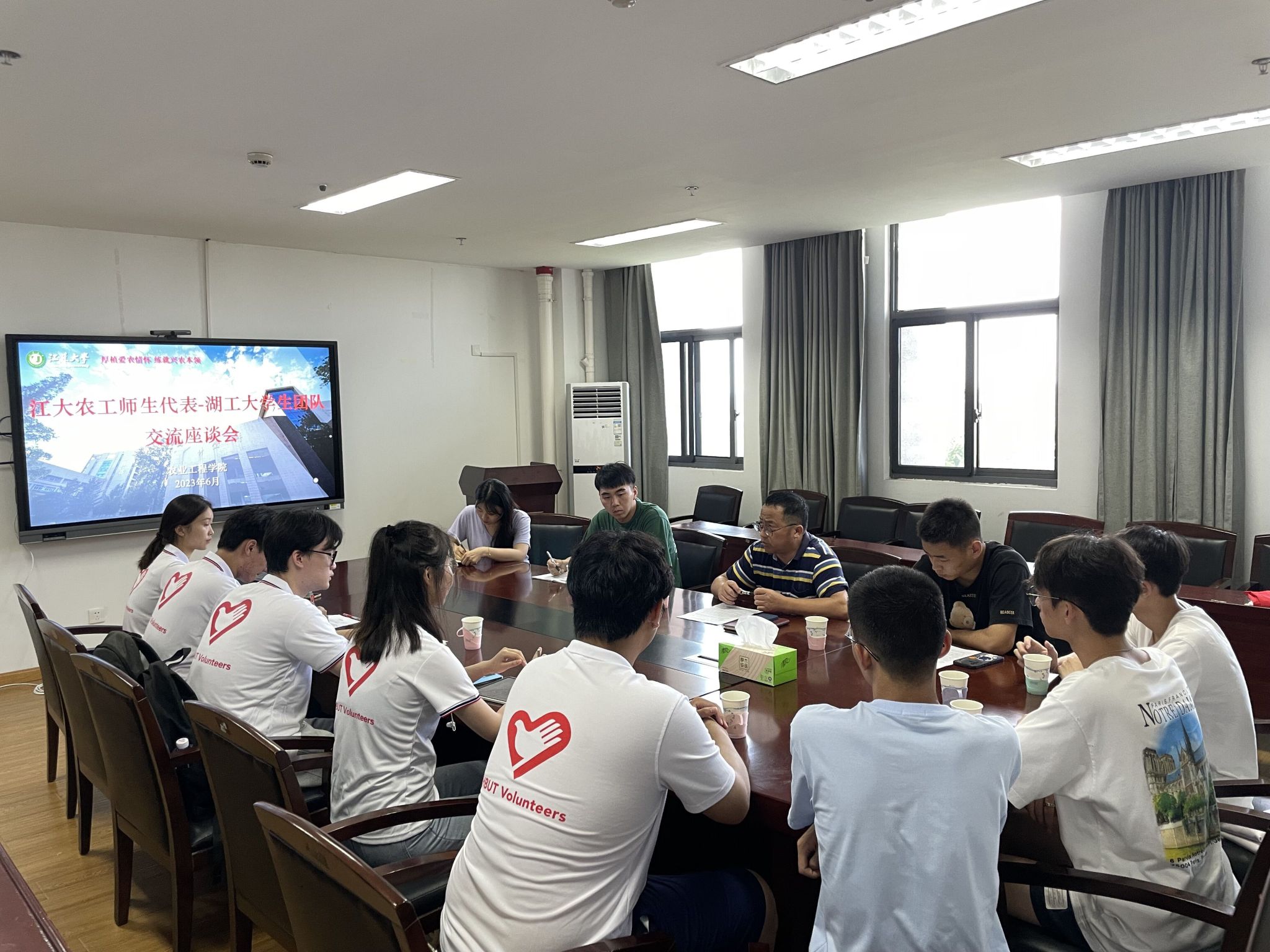 一行人首先在吴硕带领下参观了啪啪啦 实验室,随后与师生代表进行了座谈交流。座谈会上,李俊杰对湖北工业大学经管啪啪啦 学生团队的来访表示了热烈的欢迎,并围绕主题“厚植爱农情怀,练就兴农本领”详细介绍了啪啪啦 学科发展、教学特色、人才培养等基本情况。陈树人从产学研融合协同育人入手,介绍了啪啪啦 科研情况、团队典型、学科前沿信息、科技成果转化、校企合作等方面的情况。随后,双方围绕农机装备产学研合作、学科教学特色、人才培养方案等进行了深入讨论。
