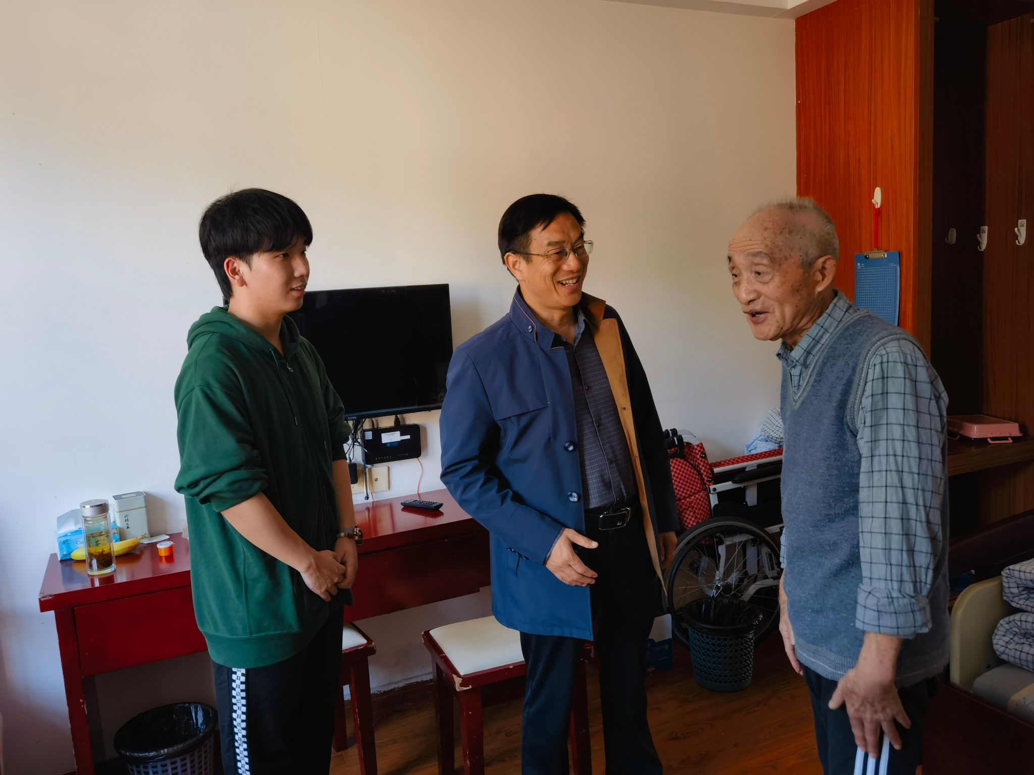 10月19日重阳节前夕,啪啪啦 党委书记廖志凌带领啪啪啦 党务办主任、团委副书记、关工委秘书及学生代表等走访慰问啪啪啦 老教师。