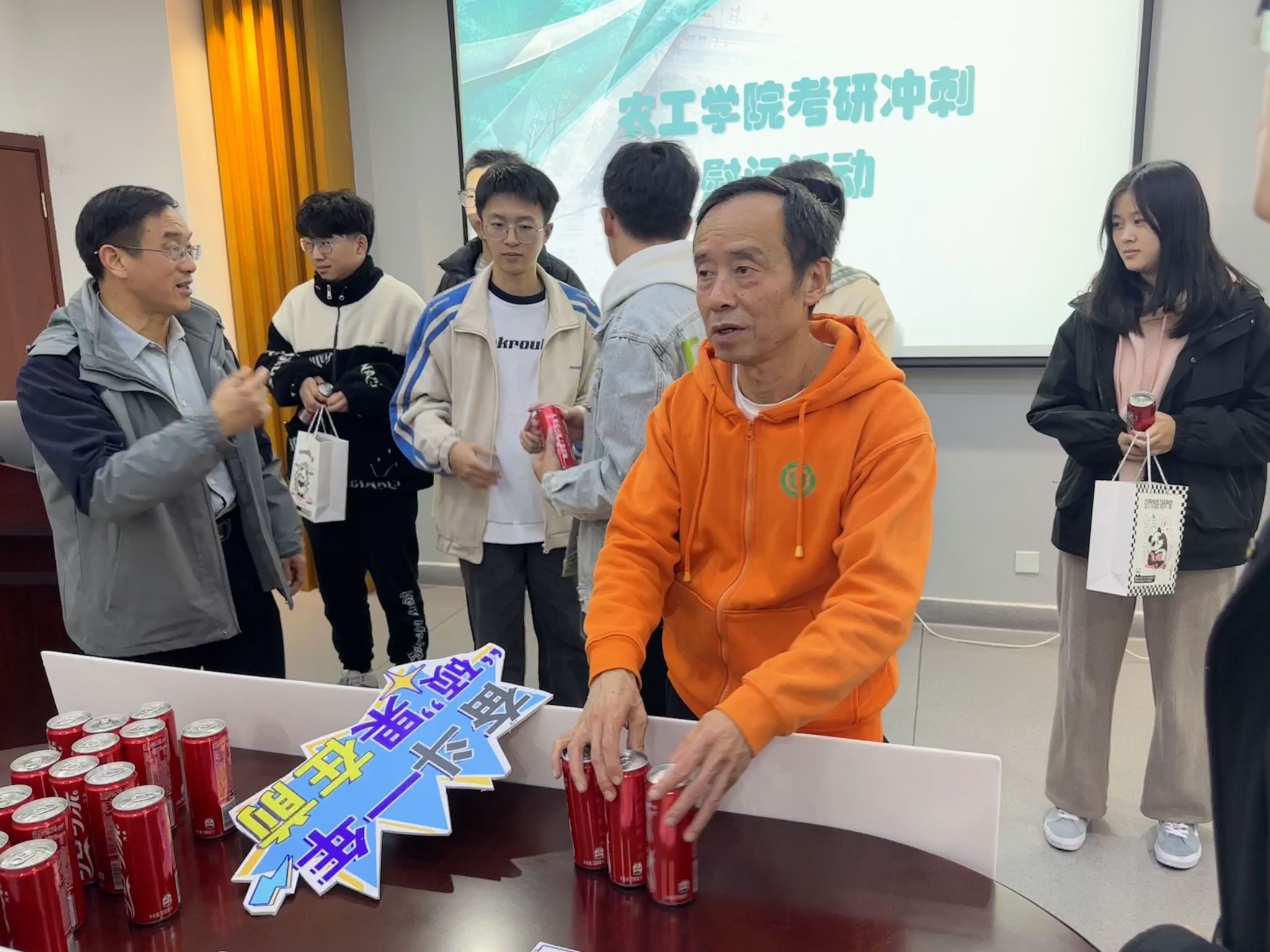 会议伊始,廖志凌对历年报考人数、考研形势进行分析,对同学们的努力表示肯定,并提出五点建议:第一,坚定信心,不怕困难;第二,坚持拼搏,不言放弃;第三,注意方法,提高实效;第四,劳逸结合,注重身体;第五,相互帮助,结伴而行。随后,凌智勇从就业现状、薪资水平、工作情况等方面,分析了本硕的区别与读研的优势,勉励同学们一定要相信自己,不轻言放弃;周军分专业讲解了啪啪啦 历年的考研报考及录取情况,他希望同学们放松心态、保持状态,争取考出理想的成绩。最后,啪啪啦 领导和老师向同学们发放考研慰问礼品,祝福同学们一战“橙”硕、心想事“橙”。