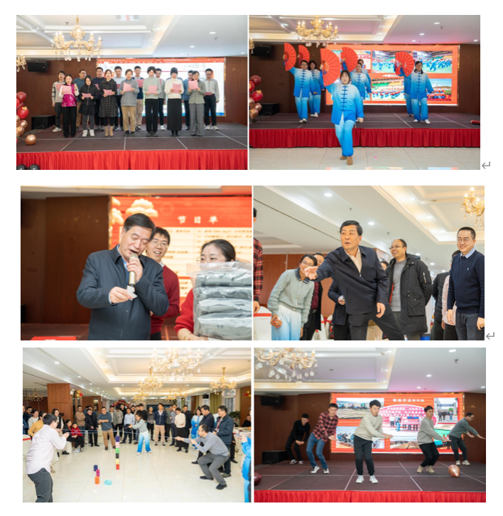 茶话会现场节目精彩纷呈,一曲《我们是新一代农机人》院歌合唱开篇,振奋人心;太极扇《中国功夫》,再现巾帼风采。各二级单位精心准备的节目相继上场,青年教师独唱《New Boy》、《农工三句半》、舞蹈《科目三》、《我爱科研》朗诵,团体合唱《爱》《挪威的森林》《明天会更好》等为现场教师带来了节日的欢乐。节目中间穿插游戏,各二级单位组队竞技,创造出多个“名场面",充分展现了各单位的团结合作精神和集体凝集力。最后,茶话会在全体教职工共同包饺子、吃饺子的过程中温馨落幕。