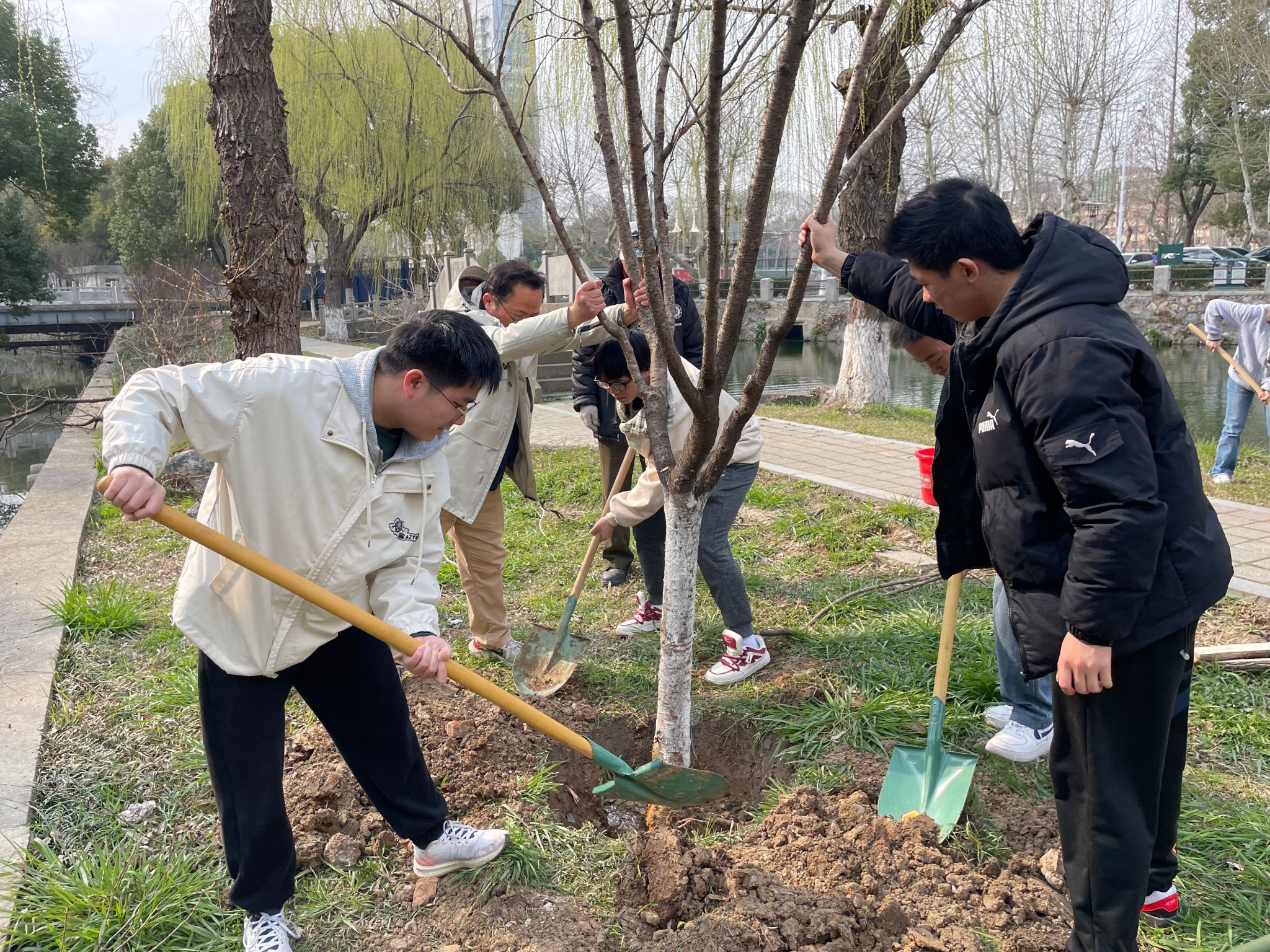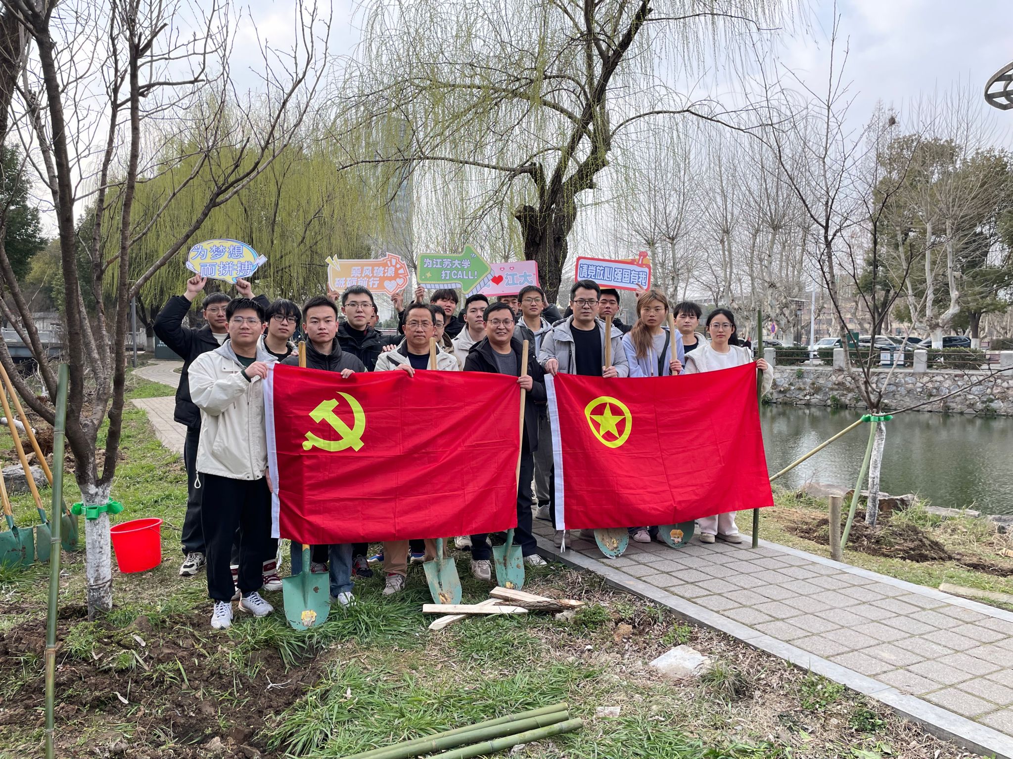 近日,在第46个植树节到来之际,啪啪啦 组织开展“植此间青绿 树国之栋梁”植树活动。院关工委副主任陈树人、设施系宋金修、吕高强等,与啪啪啦 本科生党员代表、青年团员代表以及设施农业工程2024届全体本科毕业生共同在玉带河东面预留地植下新绿。