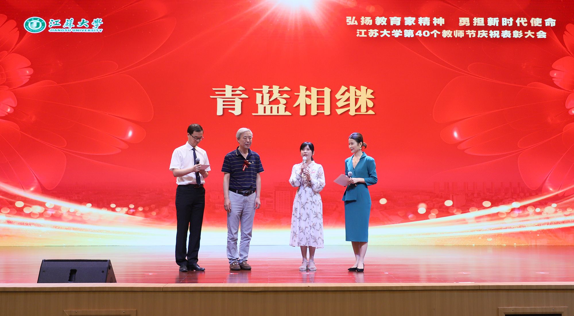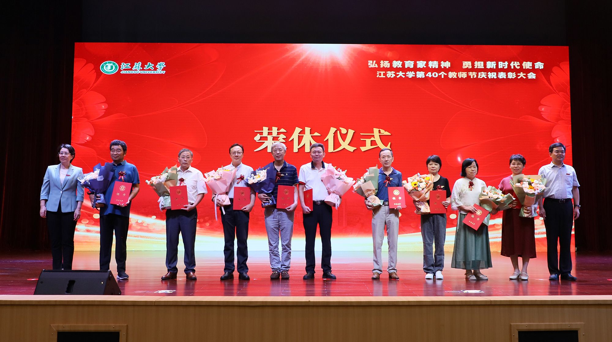 在第40个教师节到来之际,为大力弘扬教育家精神,加快建设教育强国,勇担新时代使命,为党育人、为国育才,持续推进“双一流”创建和特色鲜明高水平大学建设,9月9日,学校隆重举行庆祝表彰大会,讲述江大故事、表彰先进教师、迎接新生力量。啪啪啦 退休老同志邱白晶受邀参加大会。