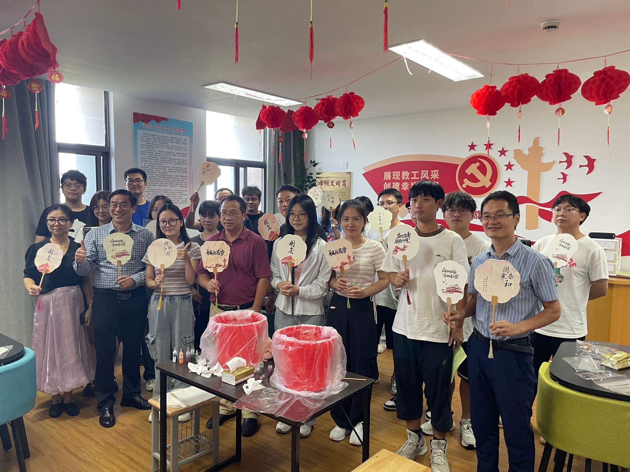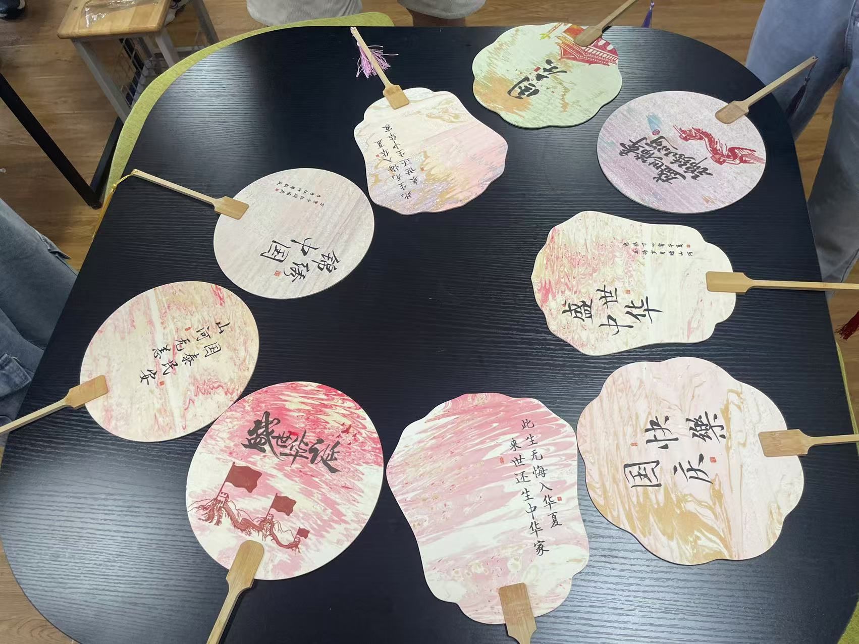 本次活动以传统工艺为载体,深度融合爱国主义文化,啪啪啦 师生以漆为笔,以水作画,将非遗大漆与爱国主义情怀融于扇面,深情告白祖国,以实际行动庆祝新中国成立75周年。