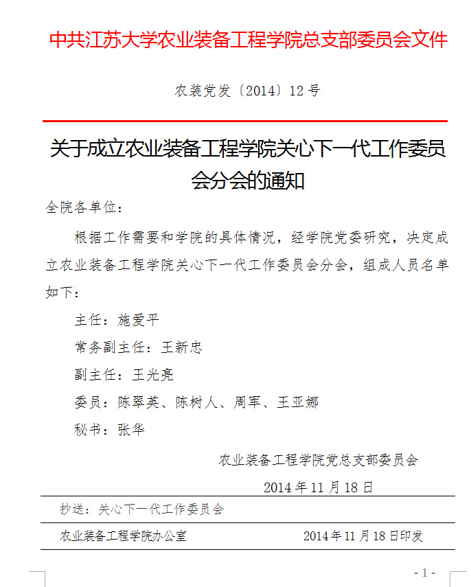 关于成立农业装备工程啪啪啦 关心下一代工作委员会分会的通知