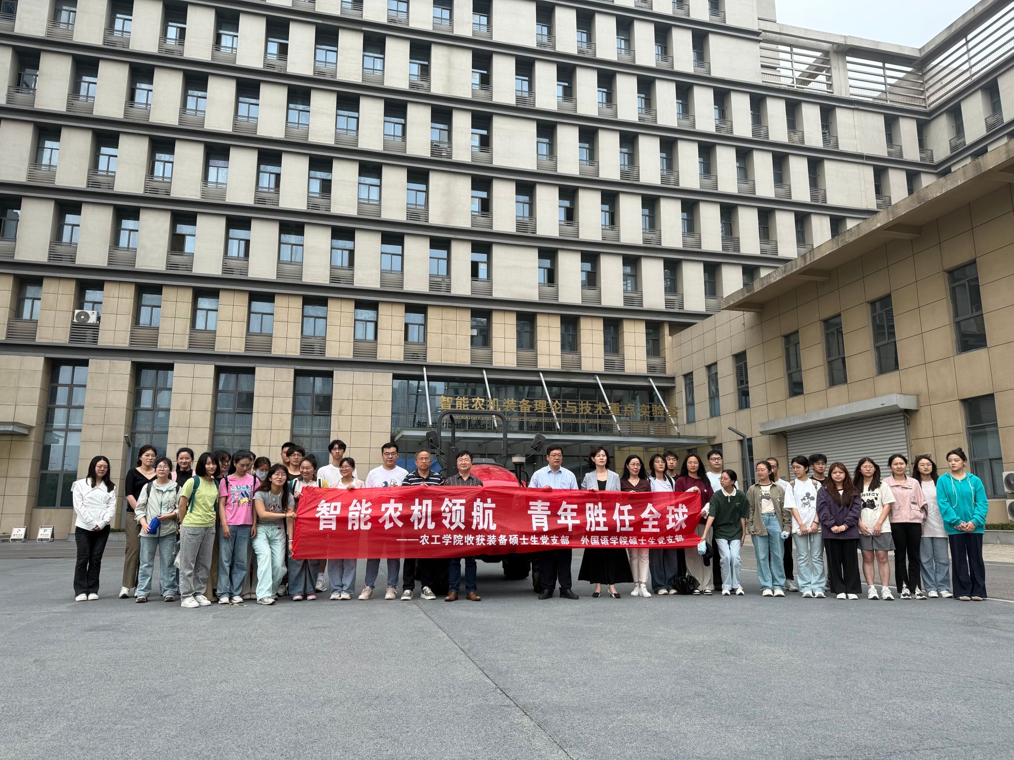为深化涉农学科内涵建设,促进学科交叉融合,5月15日,啪啪啦 联合外国语啪啪啦 开展"智能农机领航 青年胜任全球"主题研学活动。外国语啪啪啦 院长李崇月、党委副书记王蕾、MTI教育中心主任冯瑞贞,啪啪啦 副院长黄文岳、关工委副主任陈树人以及啪啪啦 收获装备硕士生党支部和外国语啪啪啦 硕士生党支部部分党员、泓江书院部分本科生一同参与了此次研学交流活动。