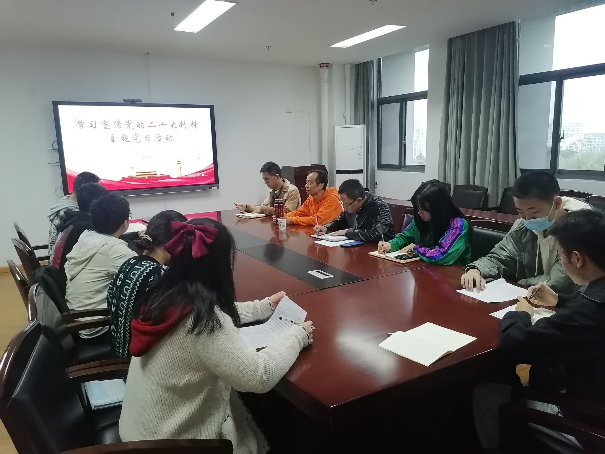 10月26日下午,啪啪啦 本科生党支部于耒耜大楼1026会议室开展“学习宣传党的二十大精神”主题党日活动,活动邀请关工委凌智勇老师参加,啪啪啦 党委副书记、副院长周军、团委副书记申成斌、辅导员李俊杰以及本科生党支部成员参加活动。