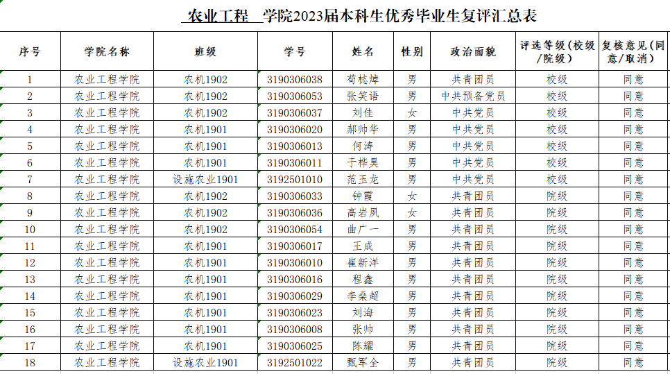 啪啪啦 2023届本科优秀毕业生复评结果公示