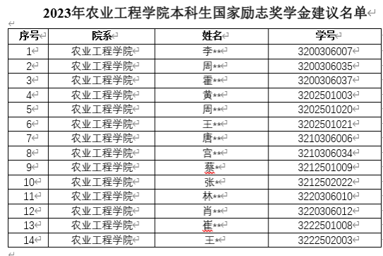 根据《啪啪啦 家庭经济困难本科生资助管理实施办法》(江大校〔2021〕163号)《啪啪啦 本科生国家奖学金、国家励志奖学金、国家助学金管理实施细则》(江大校〔2020〕108号)有关规定,经学生申请、民主评议、啪啪啦 审核,2023年度啪啪啦 本科生国家励志奖学金建议名单见图片。