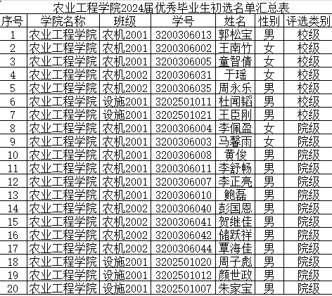 评审领导小组评审,现将2024届本科优秀毕业生初选结果公示如下: