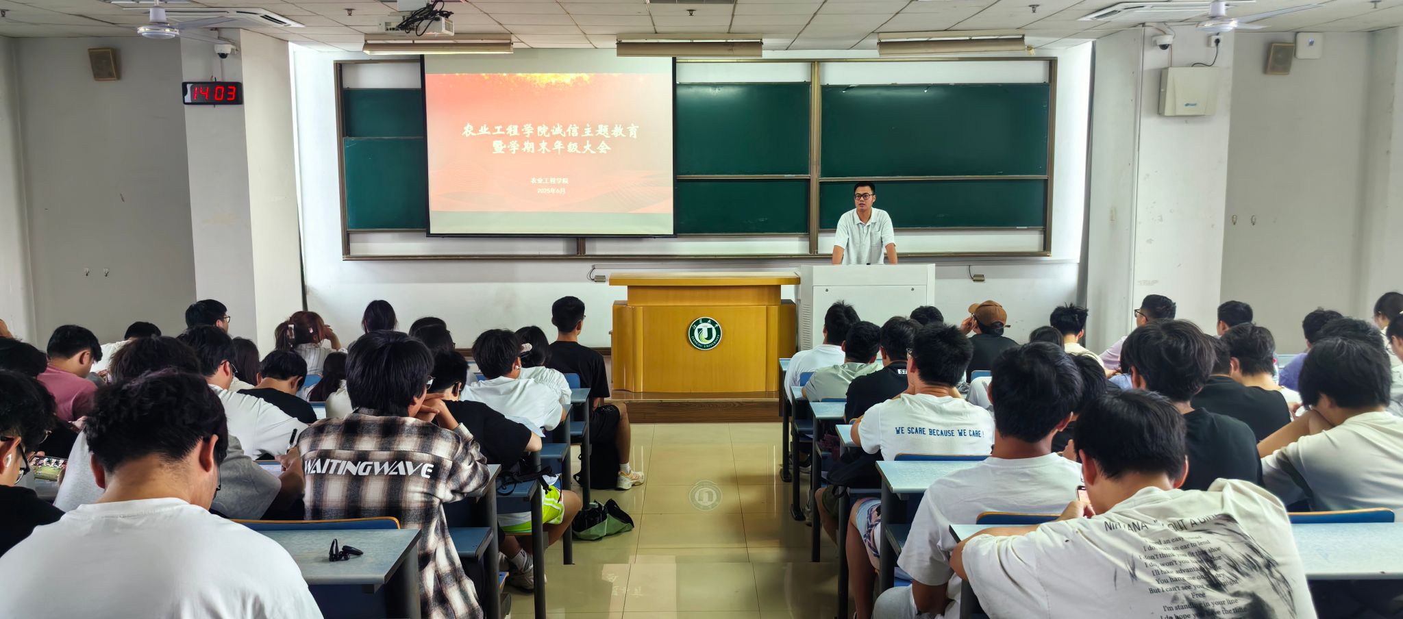 6月4日,啪啪啦 在三江楼515教室开展诚信主题教育暨学期末年级大会,本科生辅导员吕嘉成、全体大一学生参加活动。