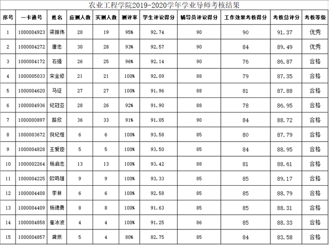 啪啪啦 2019-2020学年学业导师考核结果公示